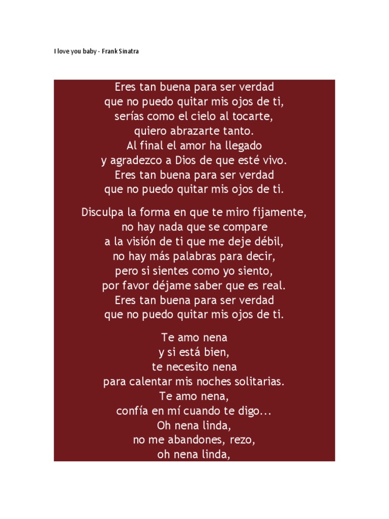 Three words - that are devine. Cant take my eyes off of you. Tradução da letra da música I Love You Baby de Frank Sinatra - Você é bom demais para ser verdade Não consigo tirar meus olhos de você Você seria como o céu para tocar quero tanto abraçar-te Finalmente o amor chegou.